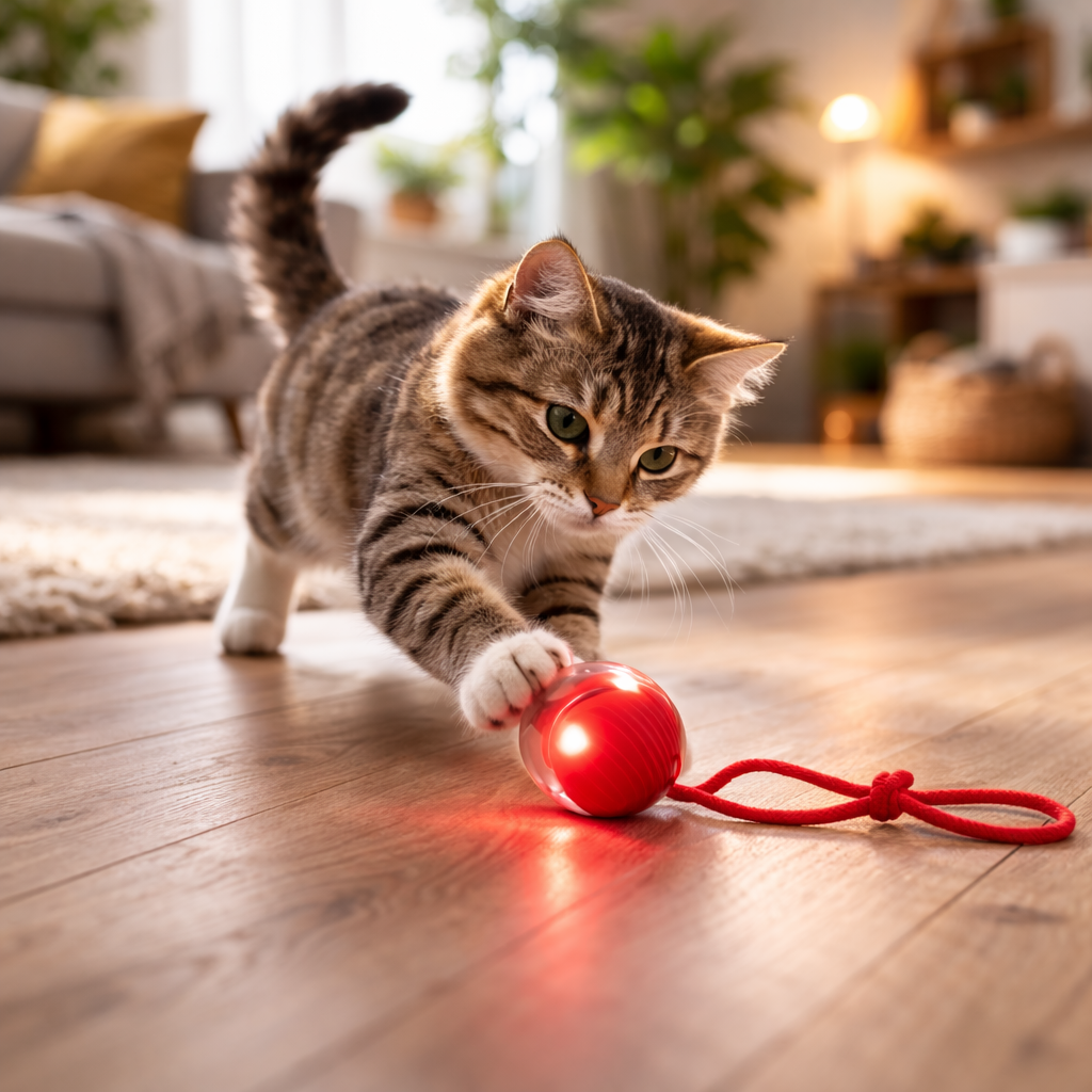 Son mouvement imprévisible déclenche la curiosité, même chez les chats peu joueurs.